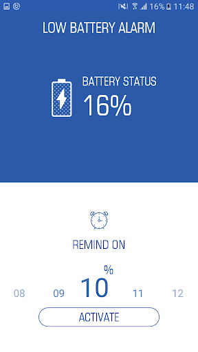 Low battery alarm is a very nice app. It works for when you want to set a minimum percentage and app is in activate mode. It will help you to notify with small vibration that your batter has gone to certain level.