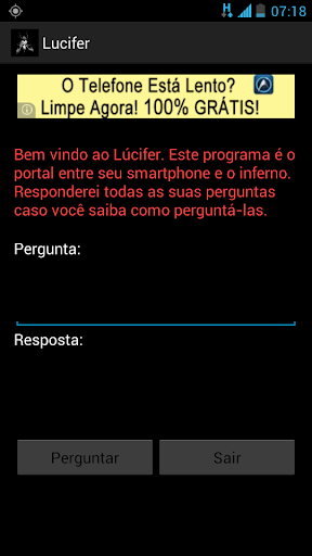 Lúcifer is a game to be played with two persons. Make questions and look the astonishment face of yours friends while its reponds everything right. See above how it work:.