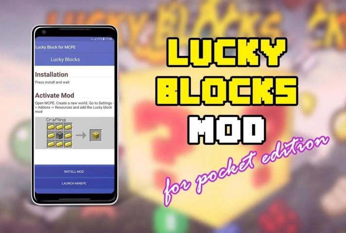 Lucky block mod for minecraft is the amazing add-on for minecraft pocket edition. Lucky block is a addon minigame created by the community and lucky block is free for you. Lucky block mod adds a new blocks to the game that looks like a '?' block in yellow color or lucky block rainbow colors.