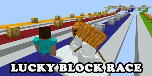 Lucky blocks mod for MCPE - this is a fun map with mini game Lucky blocks race. You need to run ahead and break the yellow lucky blocks, from which different objects will drop out. With these items you can improve your level, get weapons or food. Lucky blocks mod for Minecraft PE creates for you tests. If you break the Lucky block, randomly there may be an enemy who will attack you. To win the game, you need to break all the Lucky blocks and run to the end!