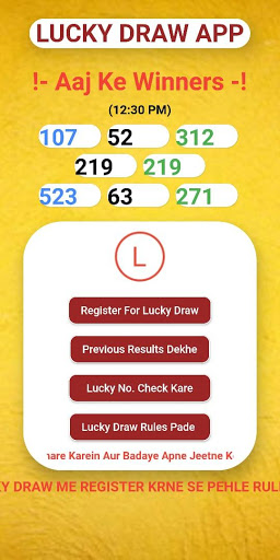Lucky Draw App Is A New And Exciting Way To Win Daily 500-200 Real Cash Directly To Your Paytm/Gpay/Phonepe Wallet For Free ! You Just Required To Download This App And Simply Register Your Self For Lucky Draw ! At Exact 12:30 Pm Daily
