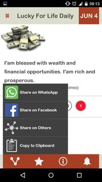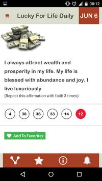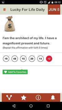 Daily you will receive one Affirmation along with the Lucky For Life number for the day, which will be unique to you.