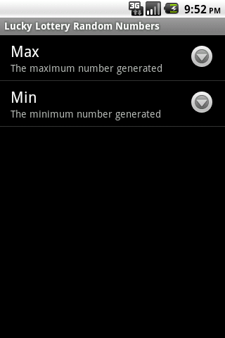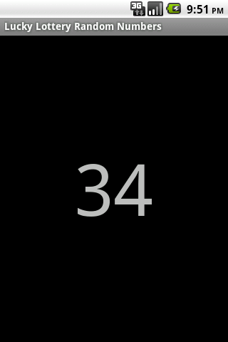 A simple random number generator. Tap the screen to generate random numbers, use the menu key and settings screen to set the upper and lower limits of the random numbers generated. The menu icons in this application are from http://www.androidicons.com/