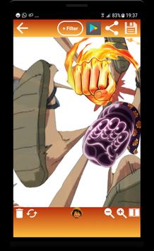 Choose a Photo from your Gallery or shoot a Picutre. Select Pirate Stuff and Burning Blood Attacks from the Sticker Menu. Apply Eastblue Filter in the Color Filter Menu. Save your Image with the Save Icon Button. Share via every messenger you like.