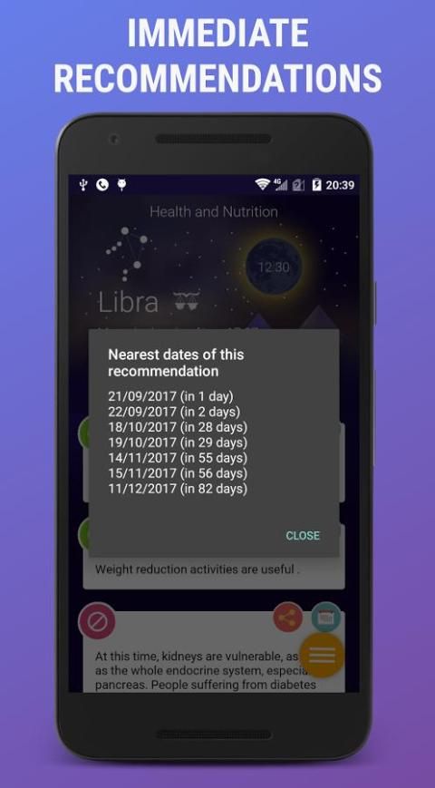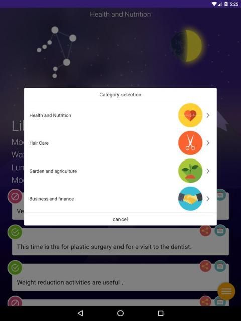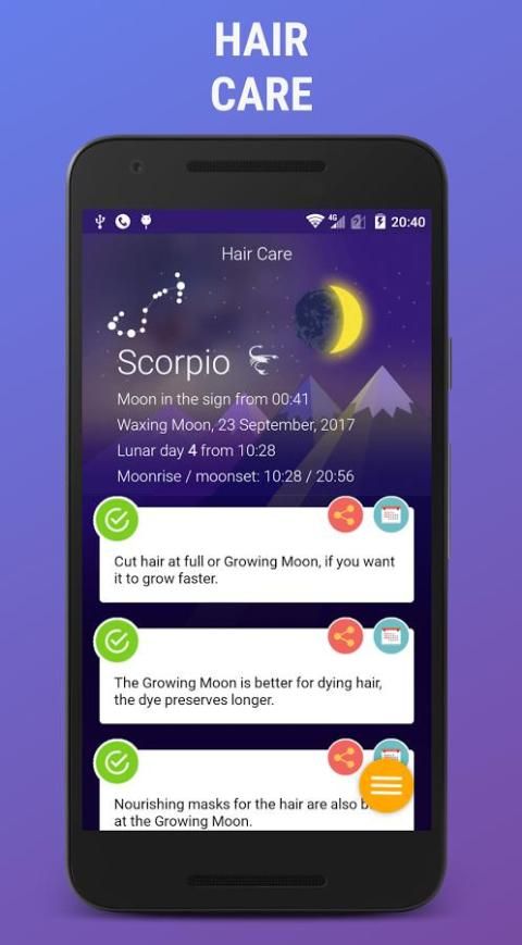 For your convenience we’ve integrated the feature of calculation of the nearest days with the detailed description. All recommendations are based upon multiple parameters, such as the moon in a certain zodiacal sign, the moon phase, the lunar day, etc.