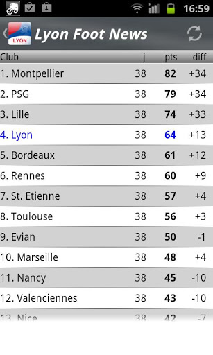 Suivez toute l'actualité des Gones en temps réel pendant le championnat mais aussi pendant le mercato, visualisez le classement et tous les résultats en un clin d'oeil.
