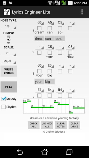 Lyrics Engineer helps you writing song lyrics. The app selects suitable words in order to match the melody accent to lyrics accent to achieve prosody and lyrics to fit comfortably the melody.