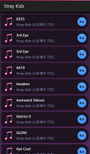In this application you can find great number of Stray Kids lyrics. This application does not contain audio or video. It only contains the lyrics, the title and the name of the artist.