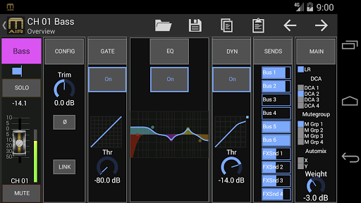 The M-AIR Android® App allows you to control all mixing, processing and effects functions of Midas M-AIR digital mixer series right from your Android® tablet or smartphone.