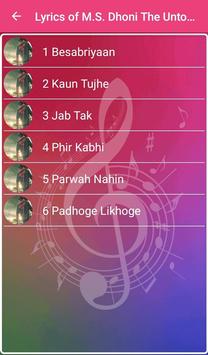 M.S. Dhoni The Untold Story is the Songs Lyrics applications that is suitable in your phone and it's easy to use and free for you. Everything on this application is intended only for entertainment. Just search for any Movie Songs Lyrics and you're getting all the songs from M.S. Dhoni The Untold Story, that you're looking for.