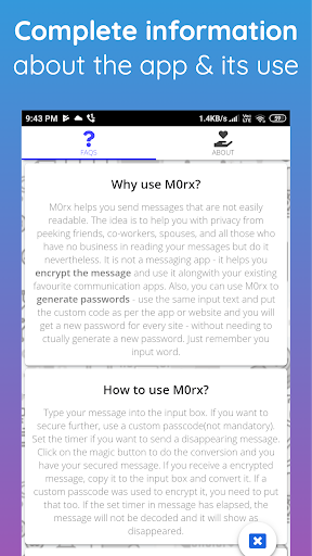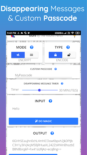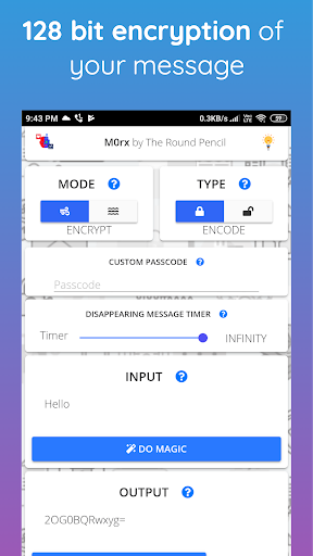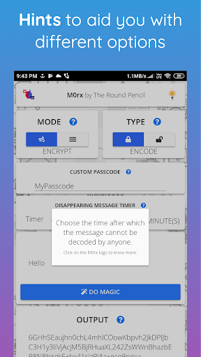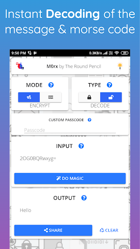 Note: Decrypting a message encrypted by M0rx needs the app. If a custom code has been used for encryption, the receiver should also know the code to decrypt it.