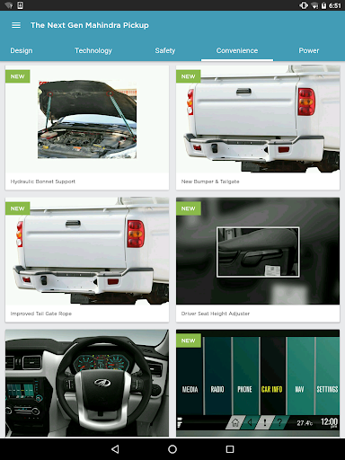 The app contains detailed Vehicle information which is very useful for an intended customer. The pikup looks amazing. Thanks mahindra for launching it.