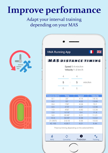 MAS / VMA Running App can be used to convert from min/km to km/h. Very useful to know your speed average for a race and during your training (Maximal Aerobic Speed / Vitesse Maximale Aérobie).