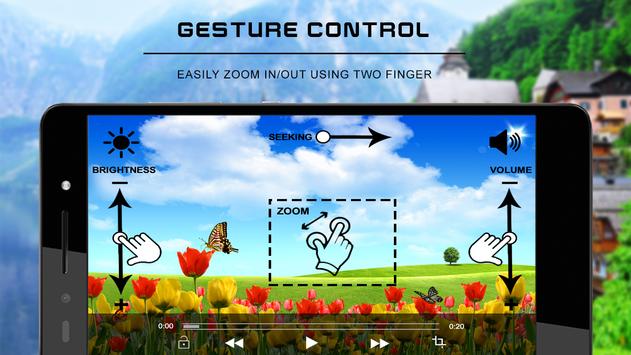 => HD Video player provide Screen brightness(Up and Down percentage wise) and Volume also up and down to right side.