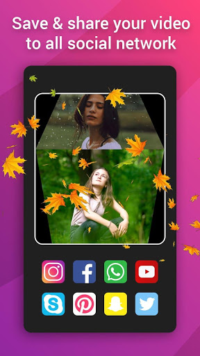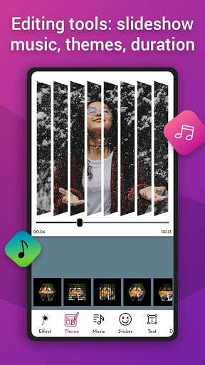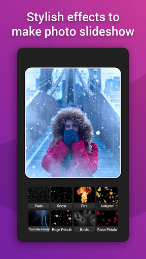 It is the best choice for you to store and share pictures, sweet memories with friends and relatives! With photo to video slodeshow with music, you can easily create videos. All you need to do to create great videos is to choose photos, add music, choose themes, nature effects.