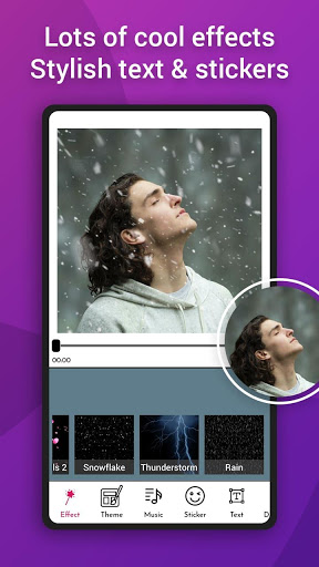 App let users choose music from your phone, just select your favourite photos, nature effect like rain effect animation , thunderstorm effect, rose petals falling on photo, snowflake effect, snow effect, beautiful slideshow video will be created. You can create your videos with text, effects, stickers, photo filters, sound effects and almost anything you want in a creative way to have fun videos. Create 15 and 30 seconds lyrical video & spectrum video with this music bit valentine - particle.ly video status maker app, video status maker.