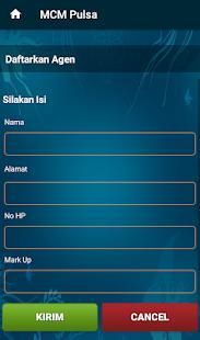 Aplikasi android MCM Pulsa adalah aplikasi mobile gratis untuk member-member setia MCM Pulsa di mana pun berada. Aplikasi ini memudahkan Anda dalam melakukan berbagai transaksi seperti pengisian pulsa, pembelian token listrik, pembayaran tagihan pasca bayar, pembelian voucher game, dll.