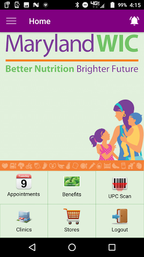 The Maryland WIC Mobile App will give WIC participants the opportunity to view upcoming appointments, view food benefits that have been issued to them in the clinic, scan UPCs while shopping at the store to see if the UPC is a WIC Approved item or not, and provide information on locations of WIC Stores and WIC Clinics across the State of Maryland.