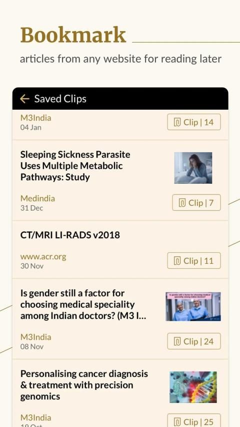 1. Bookmark articles from across medical websites all at one place to build your personal reading list. Access and read them later at your convenience!