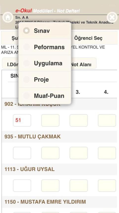 İl/ilçe Milli Eğitim Müdürlükleri, okul müdürlükleri ve öğretmenler tarafından kullanılan sistemdir. Öğretmenler tarafından uygulama içinde bulunan not defteri modülü ile öğrenci not girişleri ve not takibi yapılabilmektedir