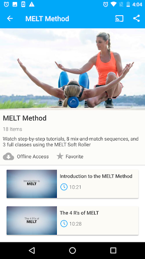 The MELT Method® is a revolutionary self-care system designed to help you get out and stay out of chronic pain, improve performance, and eliminate stress buildup from active living and exercise. More than a quarter of a million people around the world are using the MELT Method’s simple self-treatments. With the MELT Method app, you’ll get instant access to 175 videos from MELT On Demand – our streaming video subscription – that fit your needs and goals as well as new videos every week.