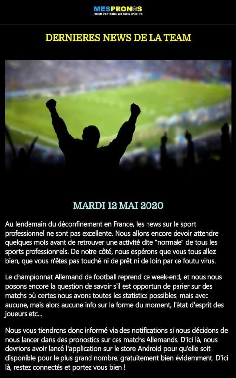 MES PRONOS is a completely free application for advice on sports forecasts. It is the extension of our website, available in PC or mobile version.