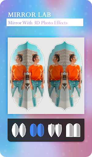 >> Create 3D mirror photo app with using different reflection styles and 3D mirror shapes for twin photos.