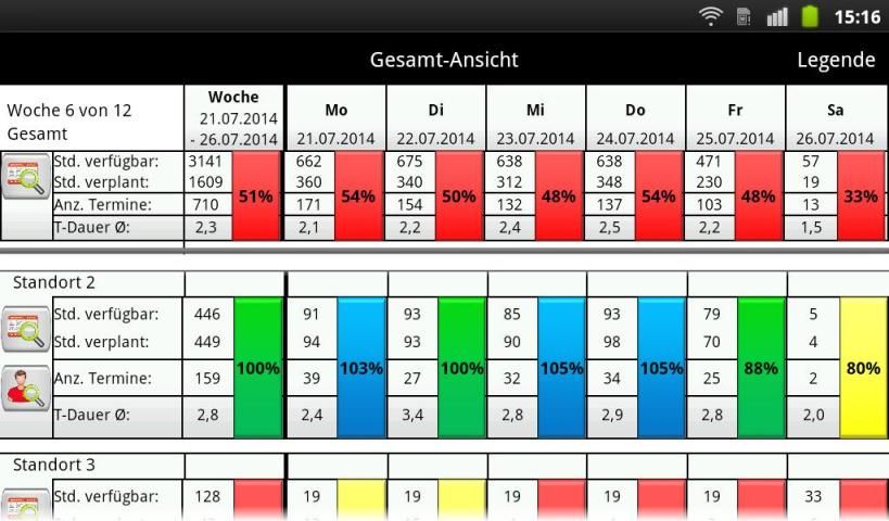 The data above are clearly compressed and made permanently available on mobile devices. A time window of 12 weeks is shown (in the past weeks, current week and weeks in the future).