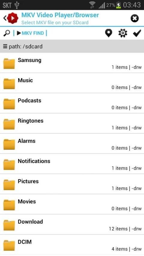 On your device, you can browsing and searching the MKV media files.
