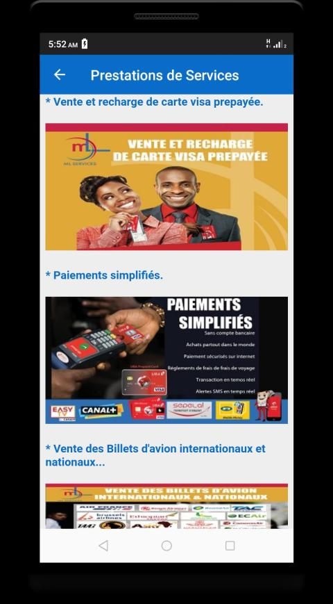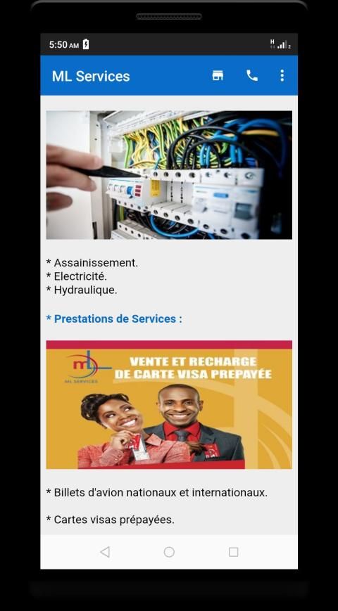 Permet de présenter de manière générale l'application; tout en mettant dans l'application les différents services que l'entreprise ML Services proposent.