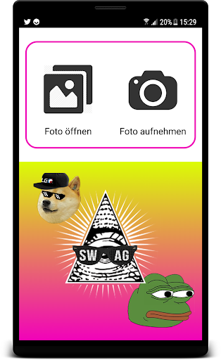 You can choose a Picture from Gallery or you can take a new Picture. To add MLG Sticker just press the illuminati Button in center. Find a complete collection of MLG Memes and Sticker. To place on your Photo just tab on a Sticker and drag to the position you want. Save your Image and share it with your gaming friends and others with the Share and Save Button.