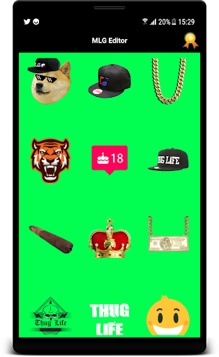 MLG Sticker Photo Editor App includes several MLG Gaming Meme Sticker like Thug Life Sunglasses and Gangster Hats, Bling Bling Necklaces or Illuminati Pyramids. Stick a Dogedog, First Person Shooter Rifles or other Guns with a Aiming Crosshair Sticker on every Photo you like.
