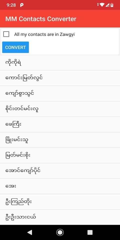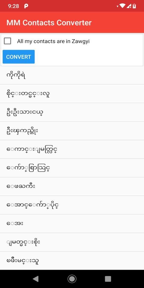 ဇော်ဂျီဖြင့်ရေးထားသော Contacts များကို ယူနီကုဒ်သို့ လျှင်မြန်စွာပြောင်းလဲပေးနိုင်သည်။