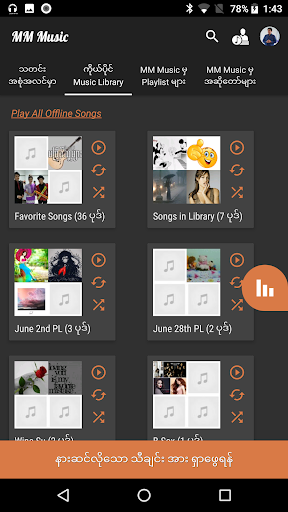 * PlayList တစ္ခုုလံုုး အင္တာနက္ မခ်ိတ္ထားတဲ့ အခ်ိန္မွာပါ အဆင္ေျပေျပနားေထာင္နိုုင္ဖိုု့ App ထဲမွာ Cache လုုပ္ထားေပးနိုုင္မဲ့ လုုပ္ေဆာင္မွုု