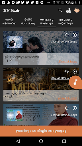 Apparently this is the ultimate purpose of this MM Music Free music streaming player.Although our Myanmar Musical Culture could give us the high-end performance to the audience,there is no way for us to appreciate their efforts and relisten their arts conveniently.