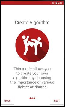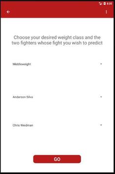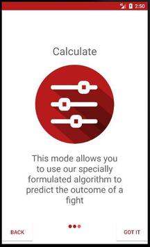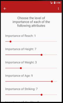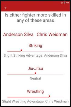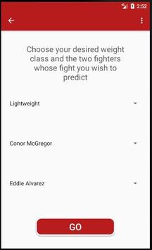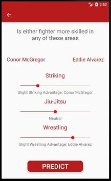 In the first mode, you just pick two fighters and choose to give no opinion on the fighter's abilities, and you will receive a prediction. This mode also allows you to give your opinion on the skill-sets and abilities of both fighters to increase the accuracy of the prediction.