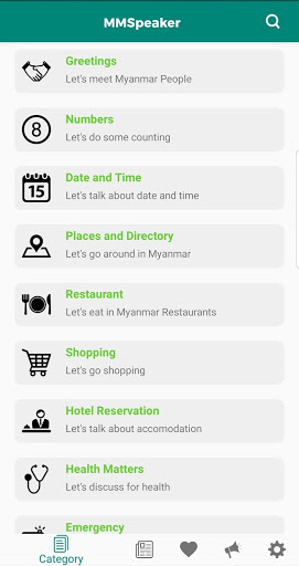 It consists of 12 categories which you need most to communicate with myanmar people when you visit to myanmar or talk with them. It is arranged in a way for you to tap easily and find them quickly.For instance, when you visit Myanmar restaurant, you can use this app starting from ordering to giving bill. Also, in case of emergency, if people couldn’t understand what you’re trying to say, you can use this app to call for help. Since it also provides simple Myanmar phonetic spellings ,you can learn and practice yourself. This app is a correct choice for tourists going to Myanmar.