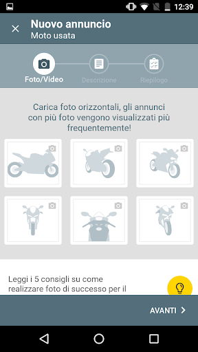 Thanks to this App, on top of viewing other people's ads, you can insert one of your own by counting on a solid network made of passionate and competent buyers and motorcyclists, just like you.