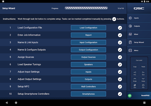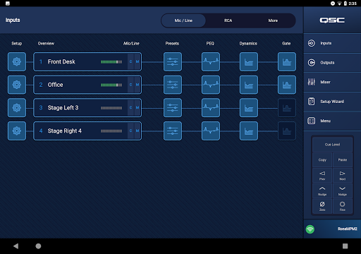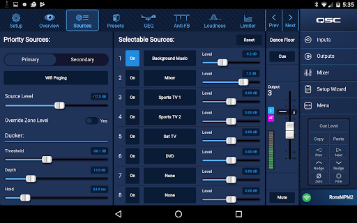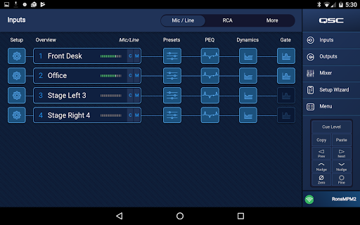 MP Install provides the system designer and installer an attractive graphic environment and intuitive workflow to configure and tune the system. A Setup Wizard helps the installer keep track of tasks and easily navigate the MP-M. Onboard Intrinsic Correction™ (factory FIR/IIR presets) for QSC loudspeakers help maximize the performance and value of the system.
