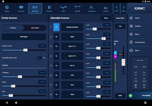 A separate app, MP Manage supports day-to-day end user operation of basic system functions including zone level, source selection, scene recall, scheduling, and mixer control. It also offers a unique store-and-forward zone paging functionality to the MP-M Series mixer.