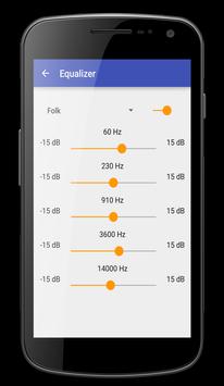 MP3 Player with Equalizer Volume, you can access all your own music library. In addition, the application allows you to control your mp3 free, simple way you can define touch. you can also access music on your mobile through the file manager, you can choose a song. Adjust each filter to provide the best results for your music.