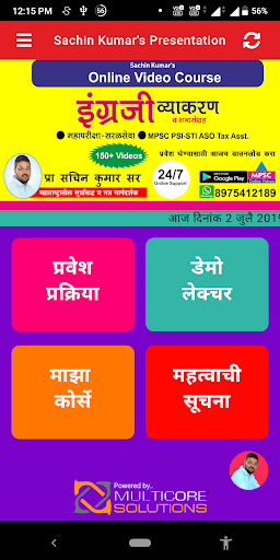 The app provides you better quality education for all competitive exams through outstanding videos of experts, Online Tests by trainers, Extra Ordinary PDF Notes. The English language Expert, Sachin Kumar's Online guidance for all competitive exams has been delivered with this app.