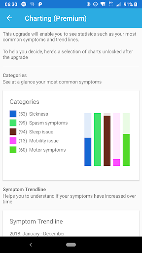 You can also upgrade to premium to unlock charting; this will enable you to visualize your data, see your most common symptoms, and keep track of how your symptoms have increased or decreased over time.