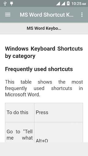 Ms Word Shortcut Key is educational application provide keyboard shortcut key tricks so that you can increase your work speed.