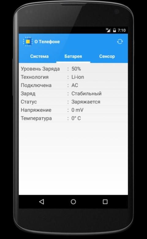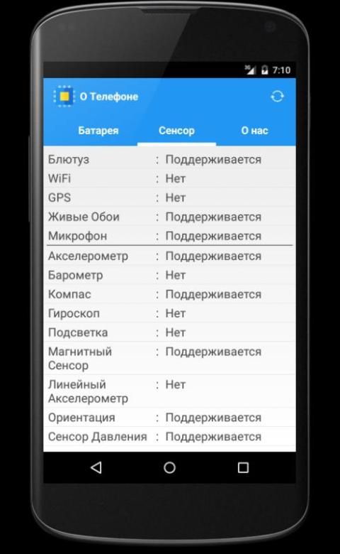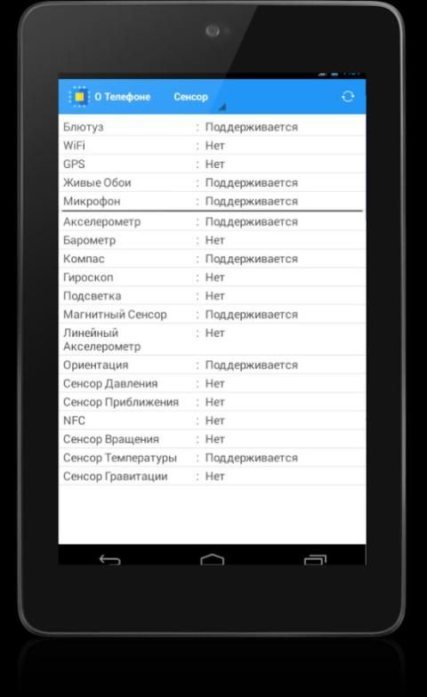 CPU type, the core architecture of the number of nuclei and their speed, the real amount of RAM memory, support for sensors, the version of android presence Root rights, information on your phone or tablet battery. The app is free and in Russian.