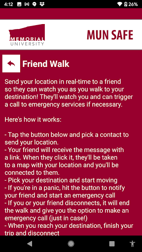 - Safety Notifications: Receive instant notifications and instructions from MUN safety when on-campus emergencies occur.