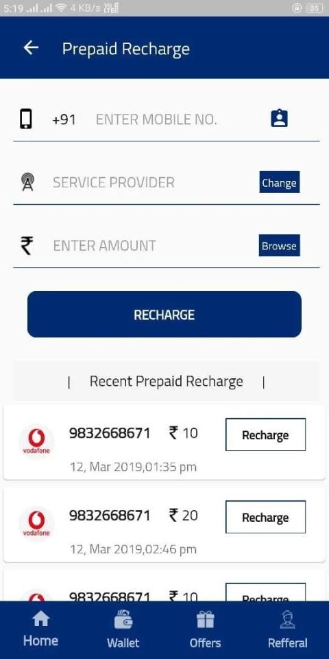 MOBILE RECHARGE (PREPAID/ DATA CARD/ METRO)