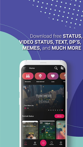 Explore thousands of dance videos, adore videos, hilarious videos, sad videos, all in one video, lyrical video status, Photo status, GIF Status, Special days status like birthday, festivals, etc, and story videos in different video Status category for different social media platforms.
