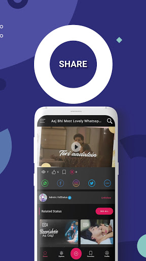 and story videos in minimum realistic size and best quality care available in VidStatus : Full Screen Snack Video Status Lyrical, an Indian App. It is very easy to share photos/videos using social platforms via status.