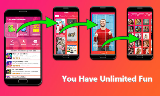 > Create cool videos using mv - master app for status maker and use photo collage maker option to look more beautifulness to your family photo.